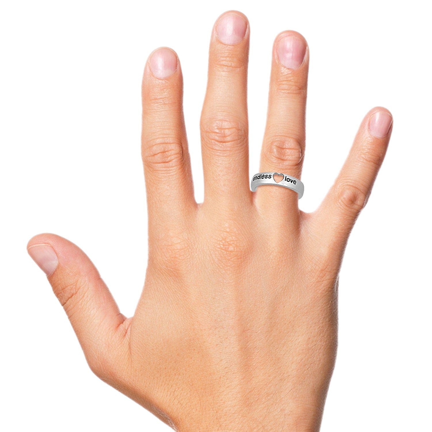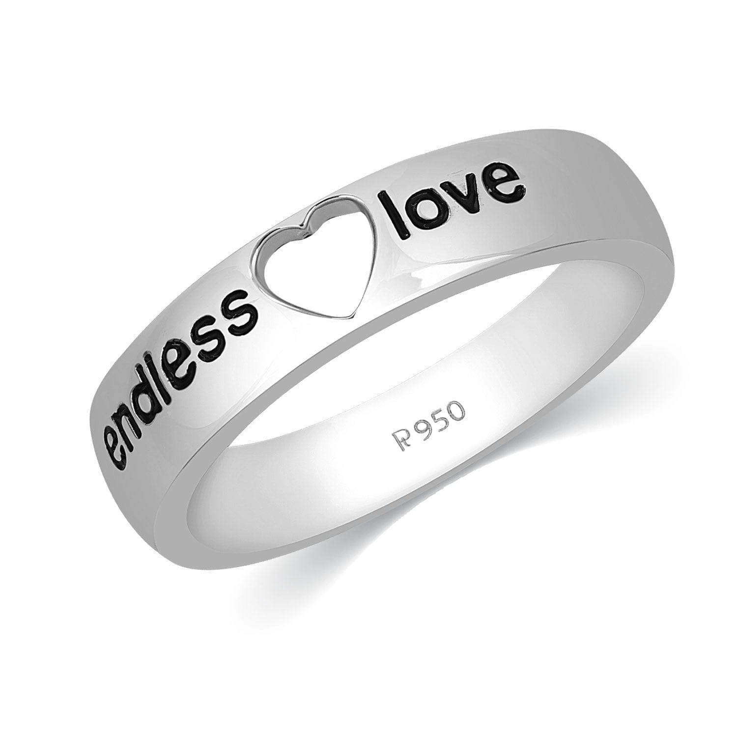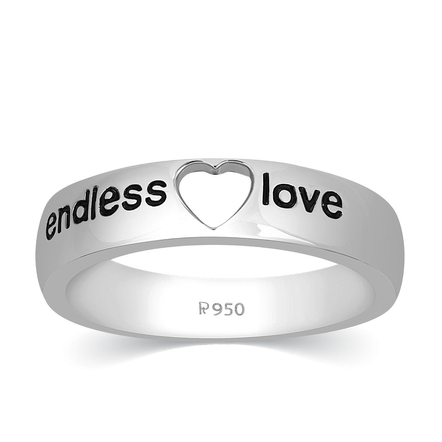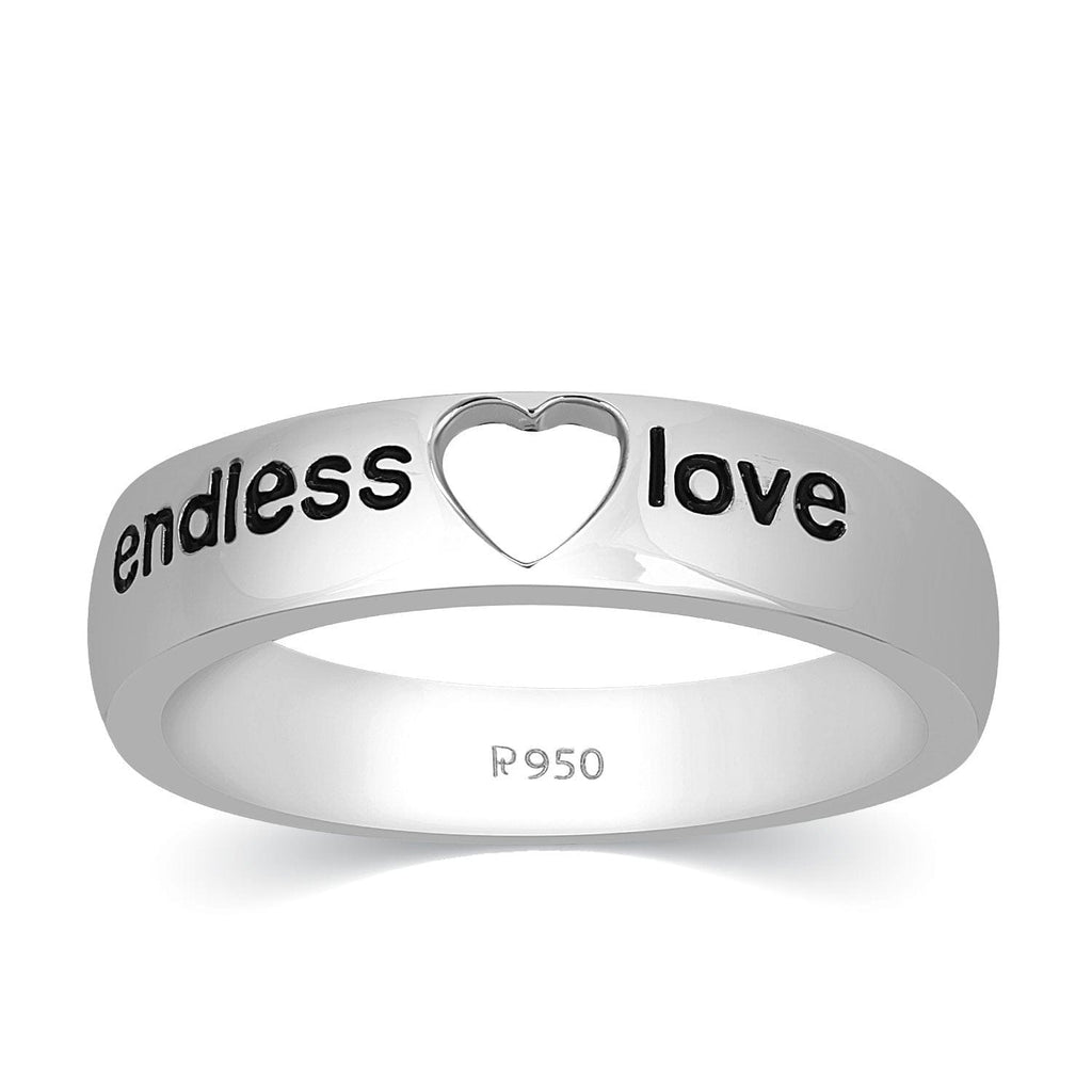 Platinum Ring with Heart Endless Love Black Engraving JL PT 337