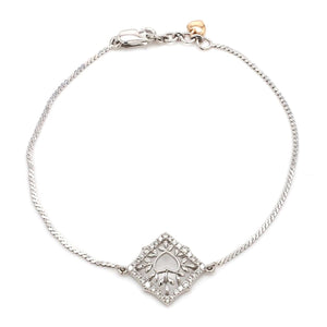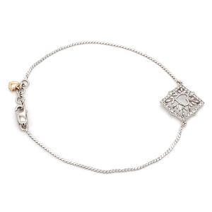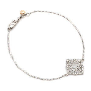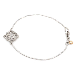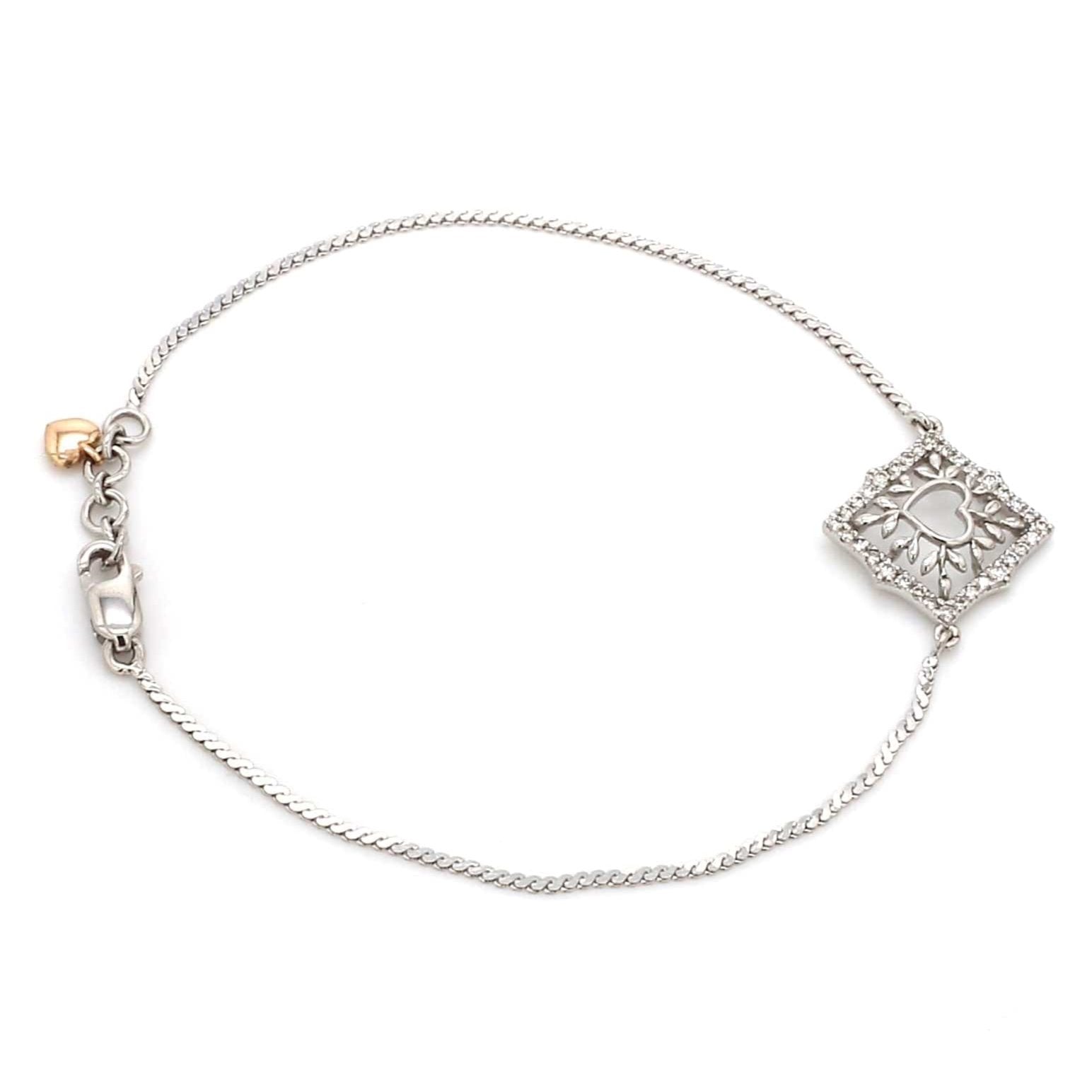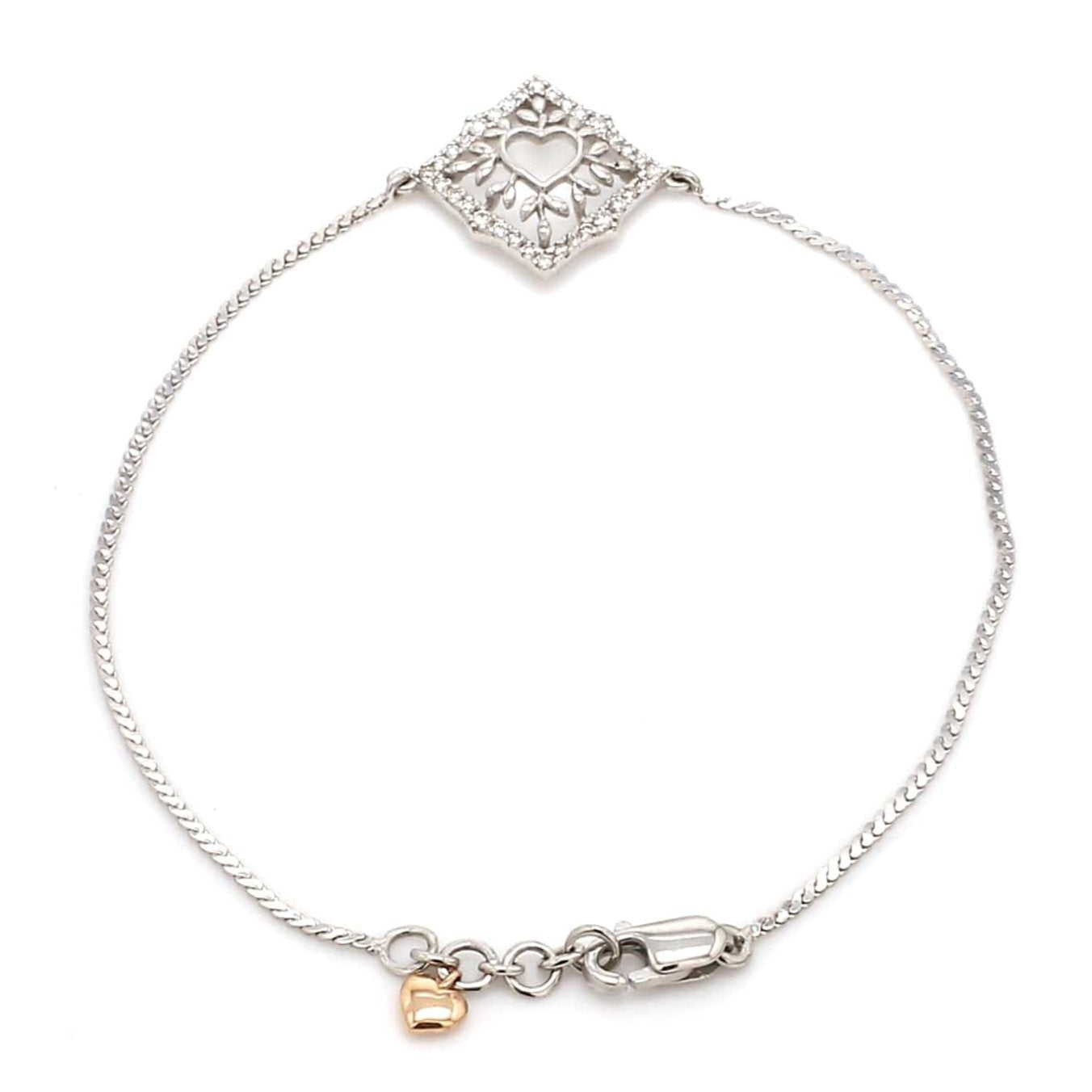 Women's platinum bracelet with a rose gold heart & diamonds.