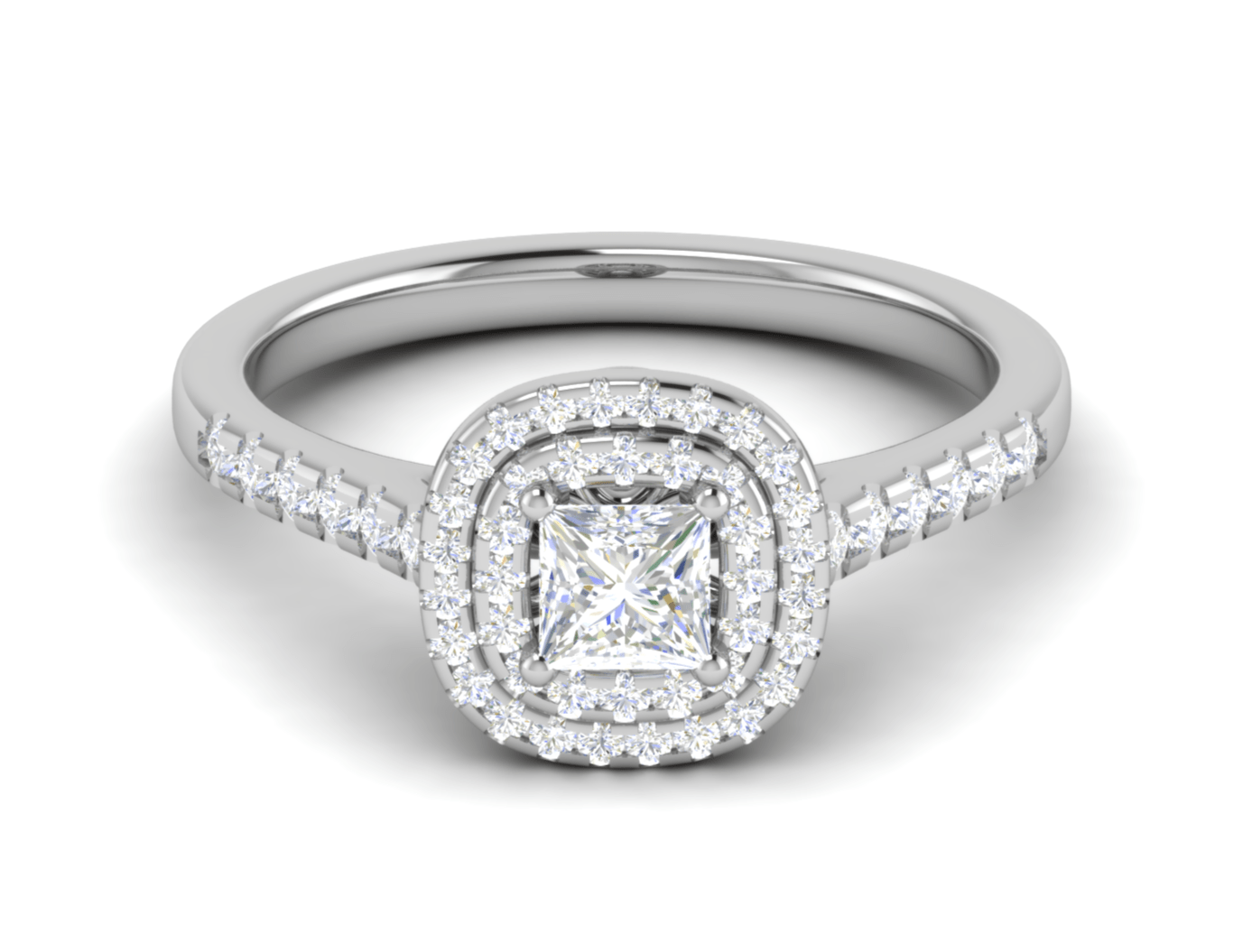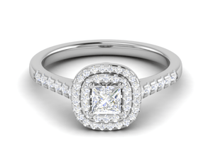 Jewelove™ Rings I VS / Women's Band only 0.50 cts Princess Cut Solitaire Double Halo Diamond Shank Platinum Ring JL PT RH PR 280
