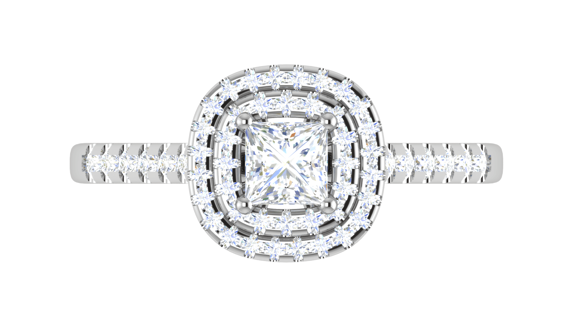 50-Pointer Princess Cut Solitaire Double Halo Diamond Shank Platinum Ring JL PT RH PR 280