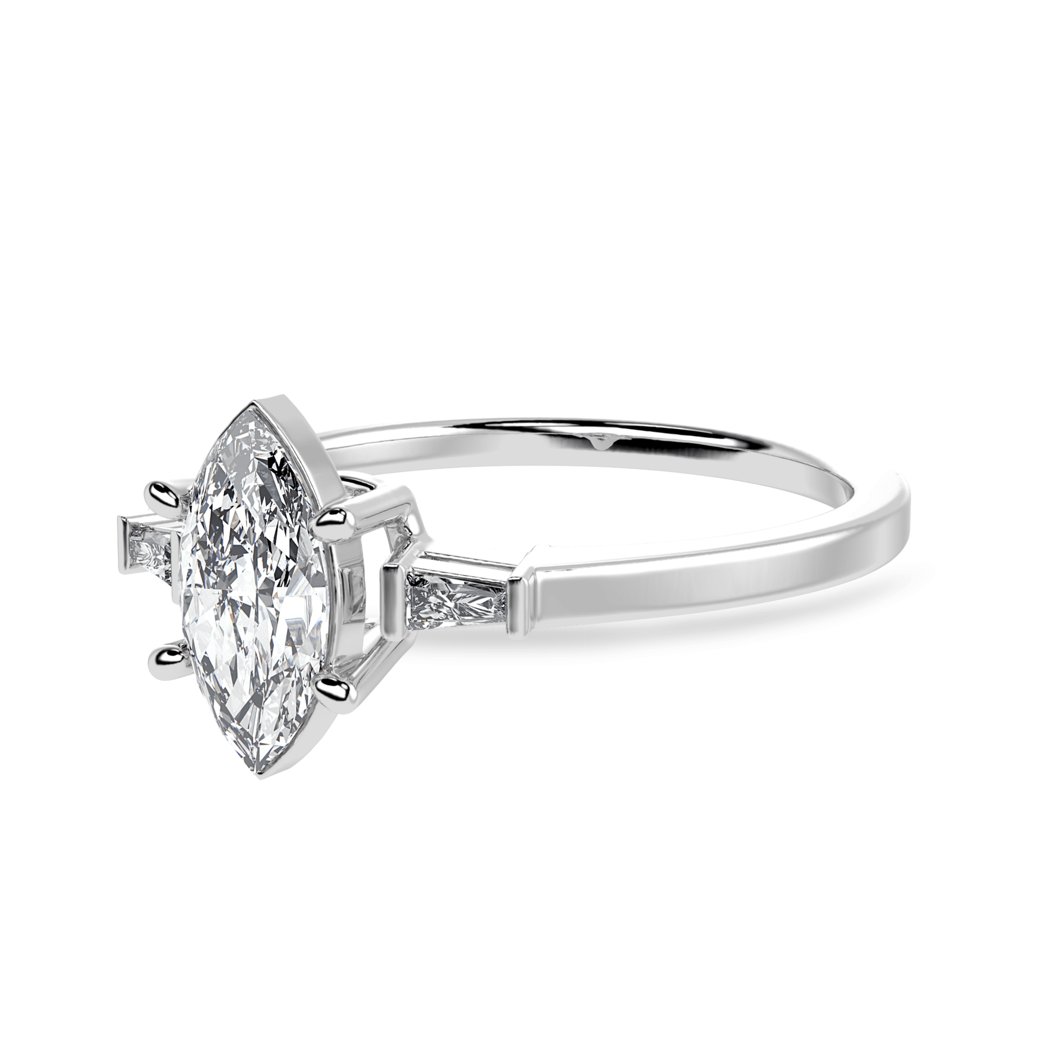 50-Pointer Marquise Cut Solitaire with Baguette Diamond Platinum Ring JL PT 1228-A