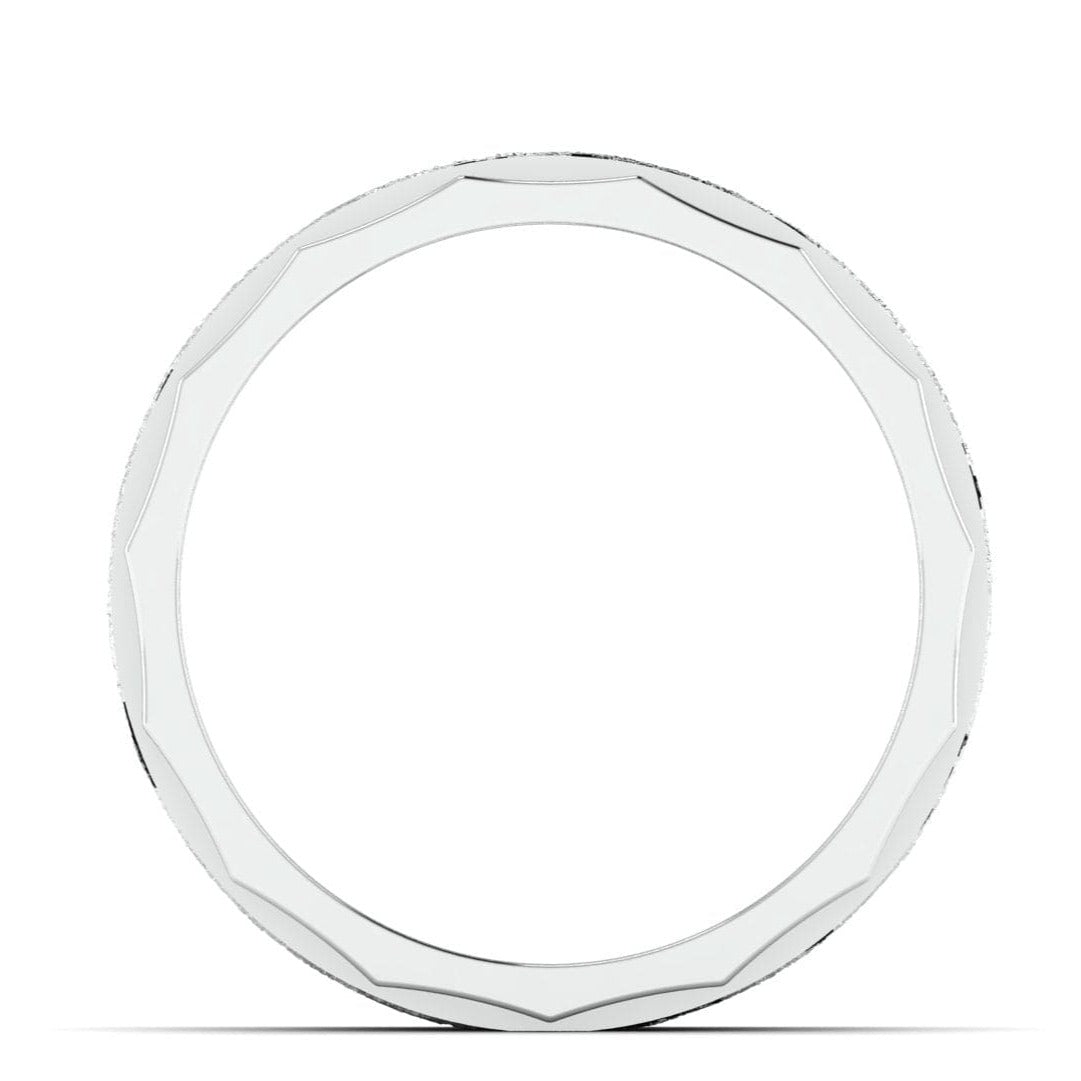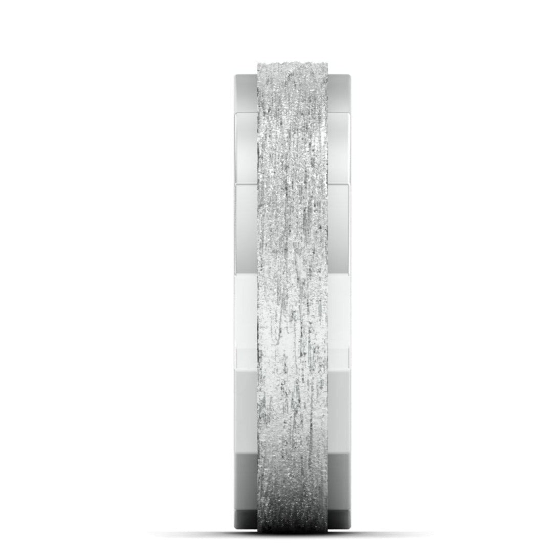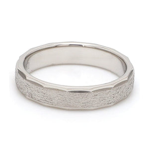 Designer Platinum Band with a rough texture in the center. The edges of the band are cut in a designer pattern.