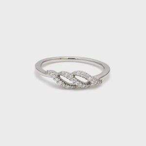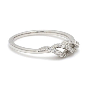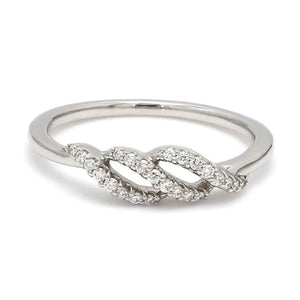 Designer curvilinear rings with diamonds. The women's band has small diamonds in the three curves. The men's band has diamonds in 3 small slanting lines.