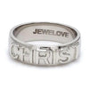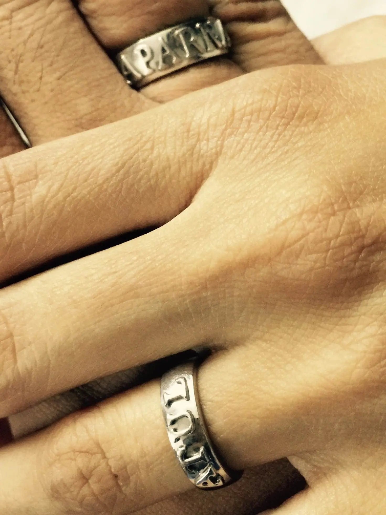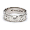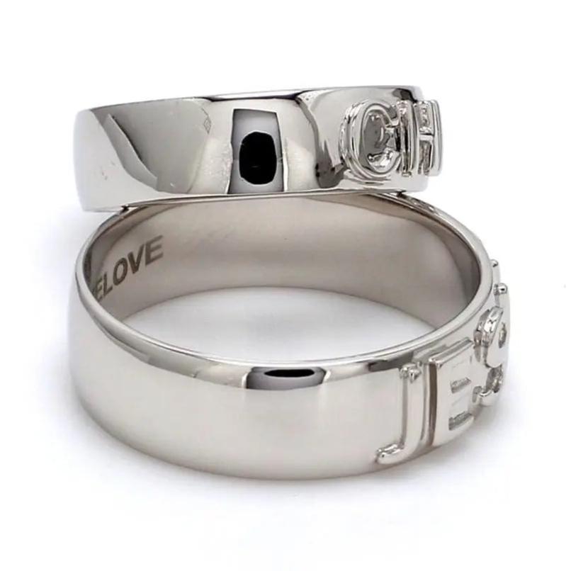 Embossed Platinum Love Bands by Jewelove. Whether it is a simple, I Love You or His or Her Name or it is the date when you first met or when you first kissed. Capture that special moment with this special Platinum Band.