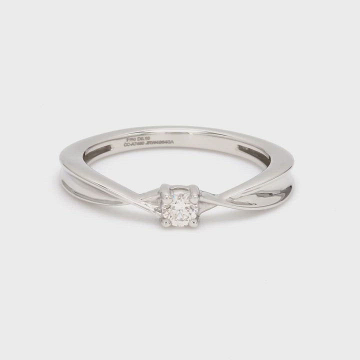 Single diamond of 0.10 cts. studded in a curved platinum setting. The ring is ready for shipping in sizes 12.